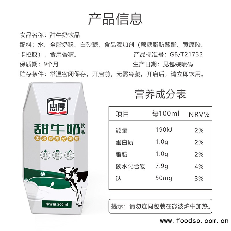 忠厚乳業(yè)甜牛奶飲品是由湖北忠厚乳業(yè)集團(tuán)有限公司經(jīng)營的甜牛奶系列產(chǎn)品,忠厚乳業(yè)甜牛奶飲品契合廣大消費(fèi)者需求,口味純正,賦予您豐富的營養(yǎng)和口感。公司始終堅(jiān)持以健康的產(chǎn)品,過硬的質(zhì)量,貼心的服務(wù),合理的價(jià)格和秉承雙贏的經(jīng)營理念,現(xiàn)面向全國誠招代理商,歡迎來電咨詢!