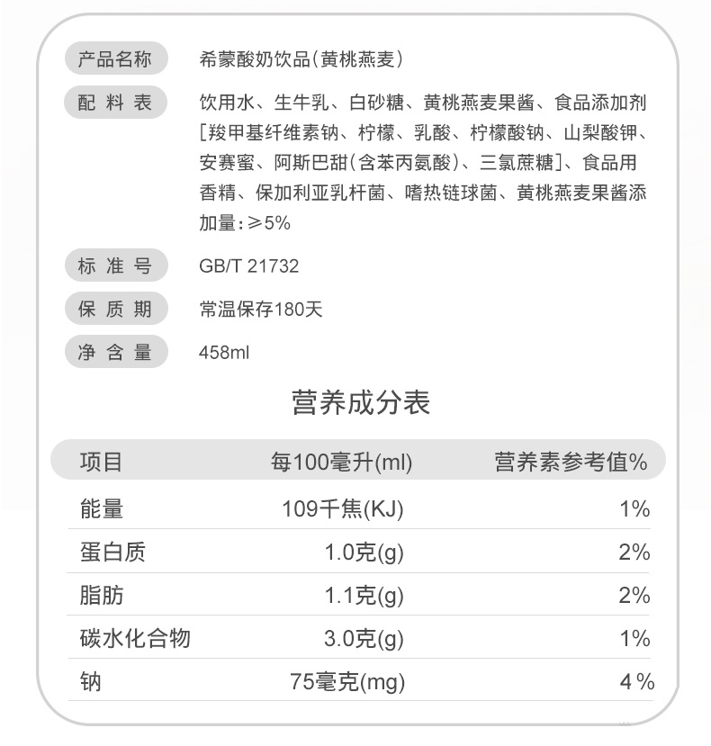 希蒙酸奶飲品458mlx12盒是由內(nèi)蒙古希蒙乳業(yè)有限公司經(jīng)營的飲料飲品->乳飲料->酸奶系列產(chǎn)品,該產(chǎn)品采用先進的加工技術(shù)來保留原材料的營養(yǎng)成分和口感,確保飲品的味道不受影響。在生產(chǎn)過程中注重質(zhì)量控制,從生產(chǎn)流程的各個環(huán)節(jié)到成品的檢測,都制定了嚴格的質(zhì)量標準和控制措施。通過這些措施,保證產(chǎn)品的質(zhì)量穩(wěn)定性和安全性,讓消費者放心飲用。該飲品可以為身體提供水分,同時還能帶來美妙的口感,在市場上具有廣泛的需求,無論是在聚會、辦公還是休閑場合,都可以成為人們的貼心之選。想要代理本款產(chǎn)品的經(jīng)銷商歡迎致電!